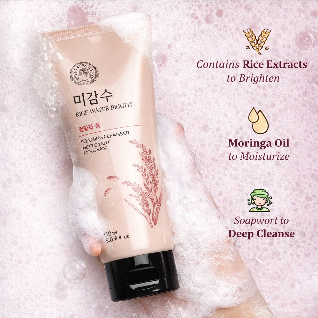 এই ক্লেনজারটি রাইস ওয়াটারের গুণে তৈরি, যা দীর্ঘদিন ধরে কোরিয়ান স্কিনকেয়ারে স্কিন ব্রাইট ও হেলদি রাখার জন্য ব্যবহৃত হয়ে আসছে।
