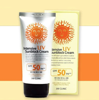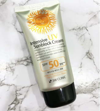 The 3W clinic intensive UV sunblock cream is a soft cream type sunscreen that can be spread softly on the face protecting the skin from the sun.