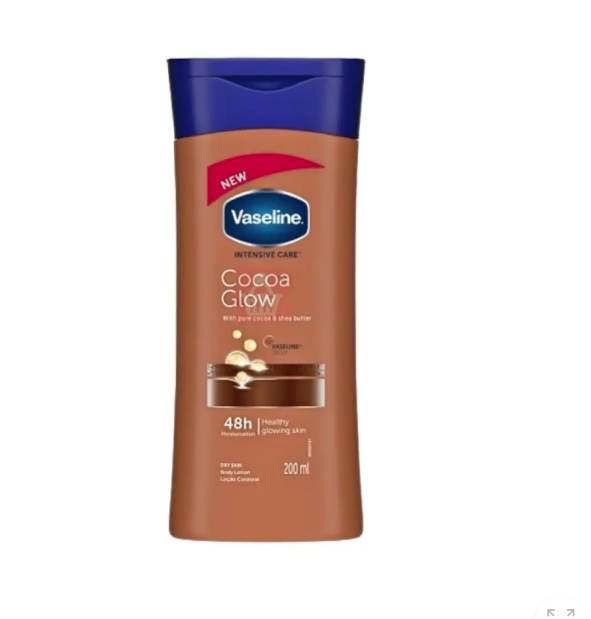 - Vaseline Intensive Care Cocoa Glow Body Lotion moisturizes dry skin from the first application